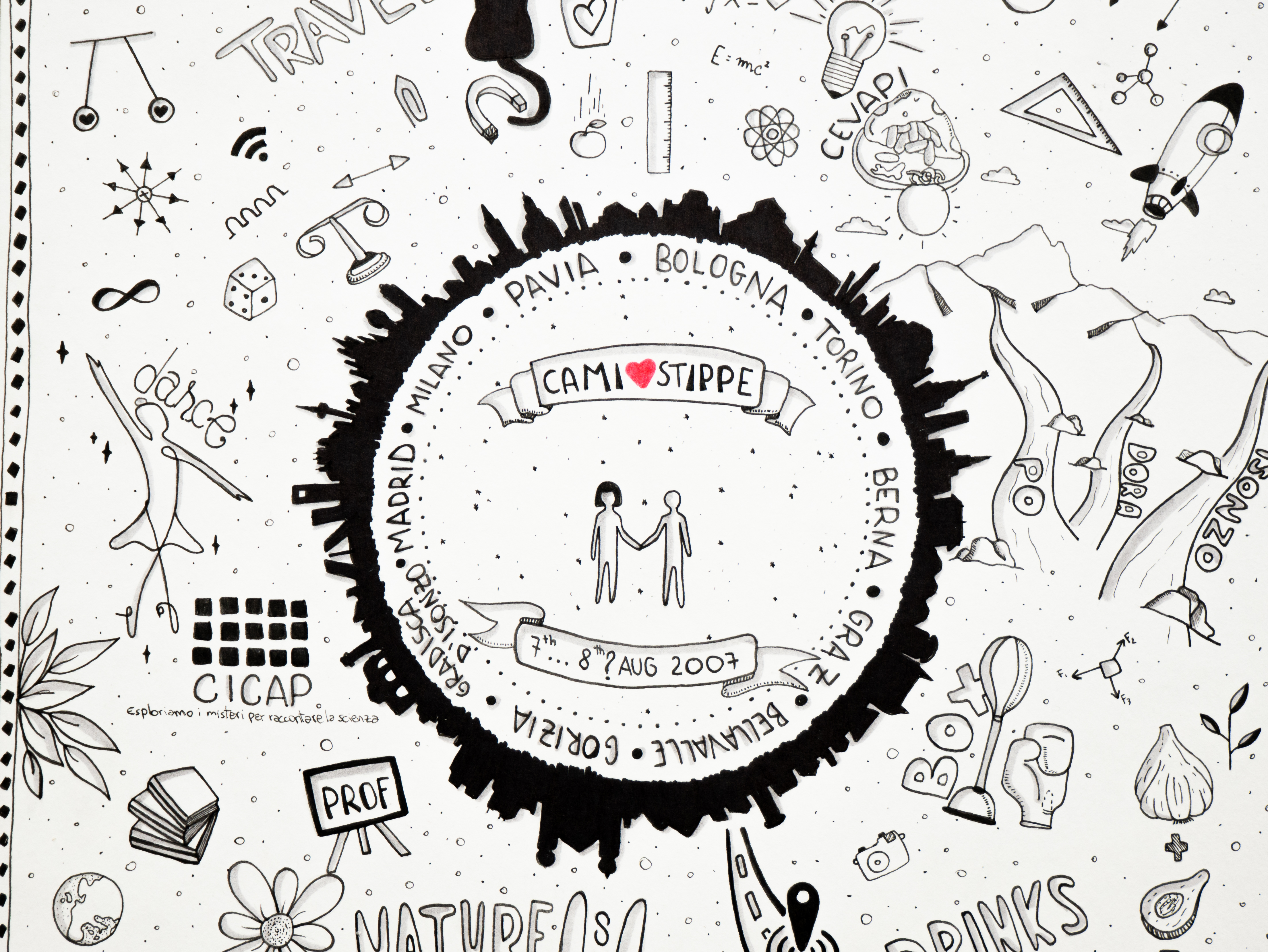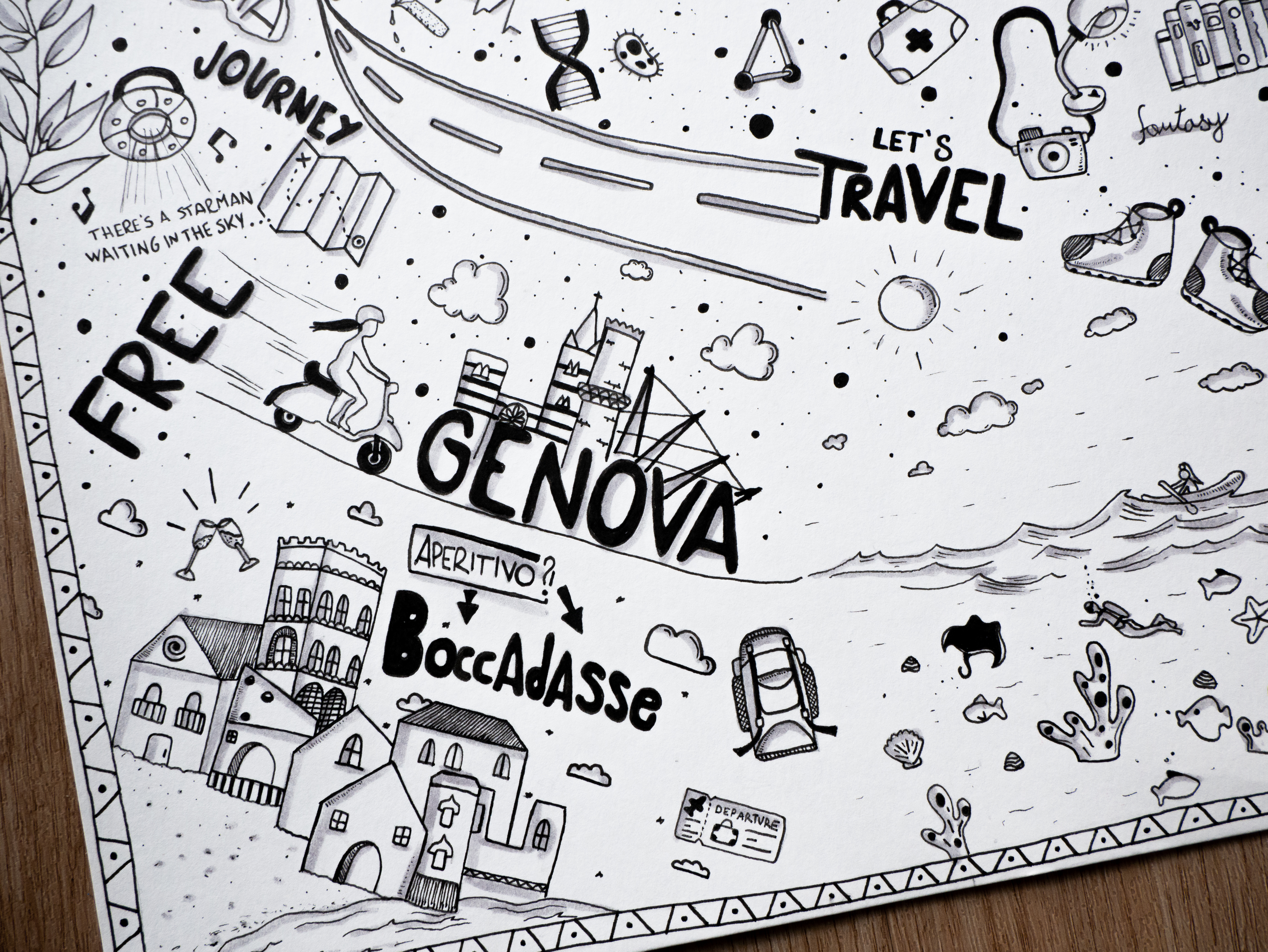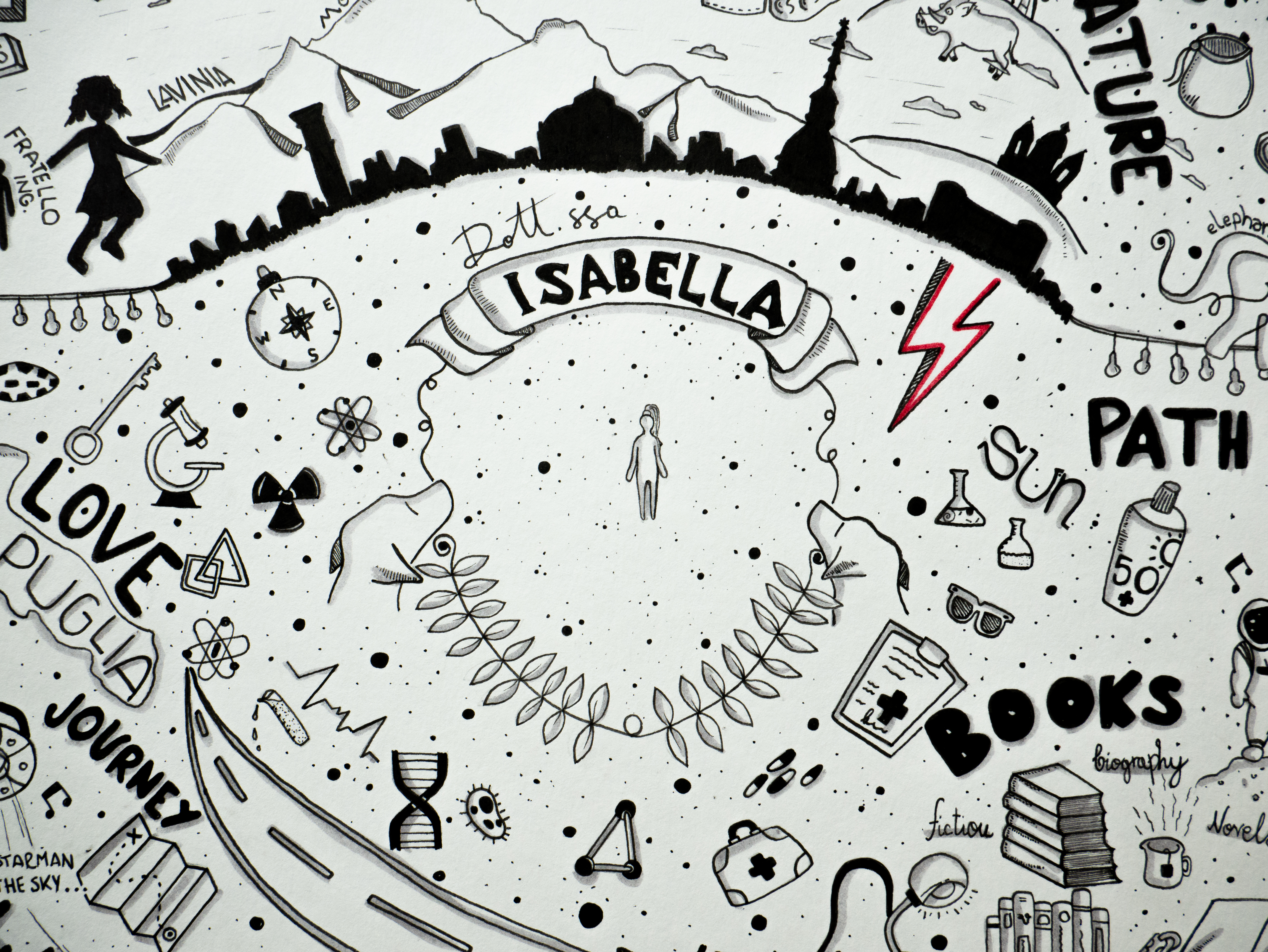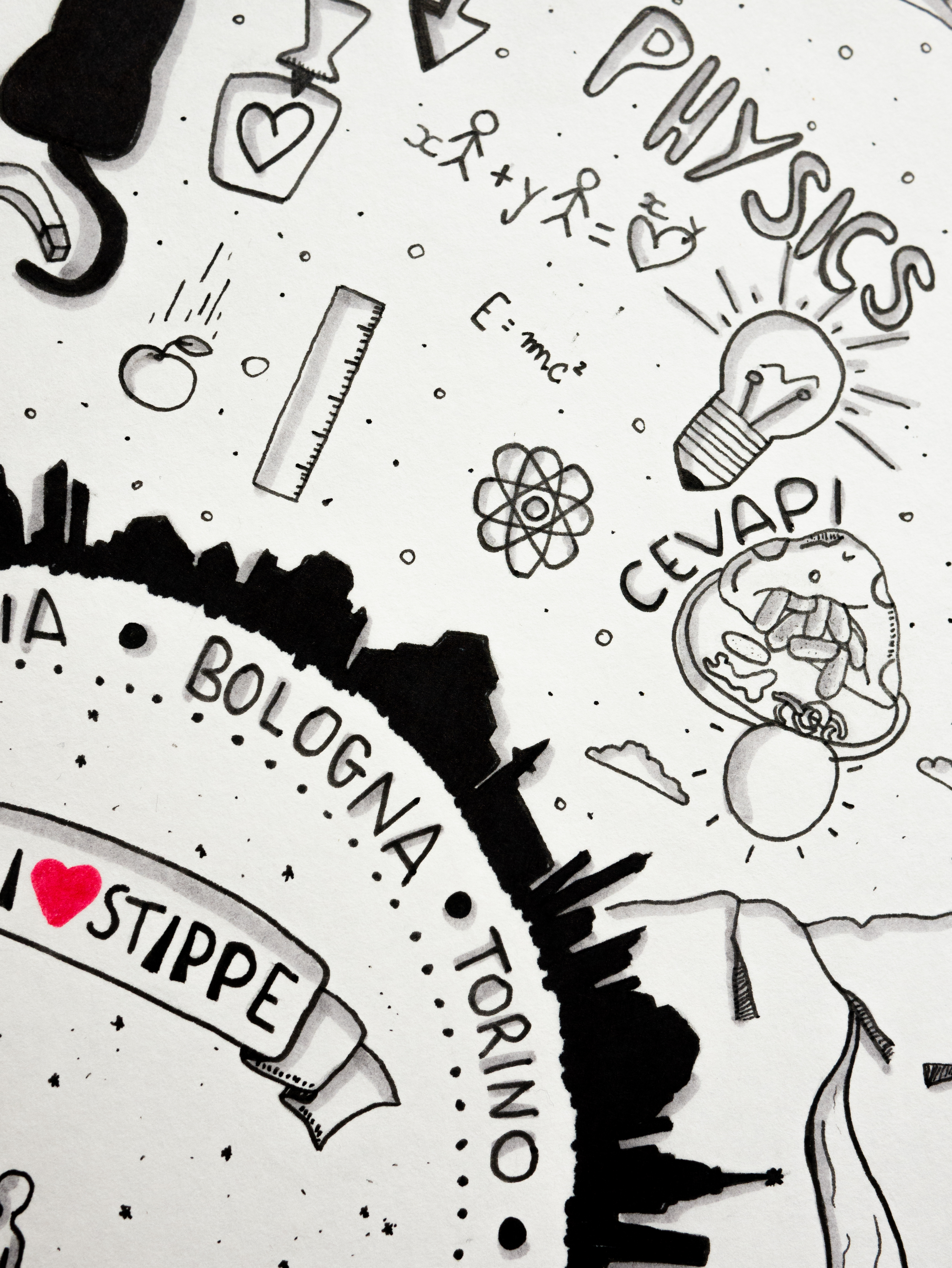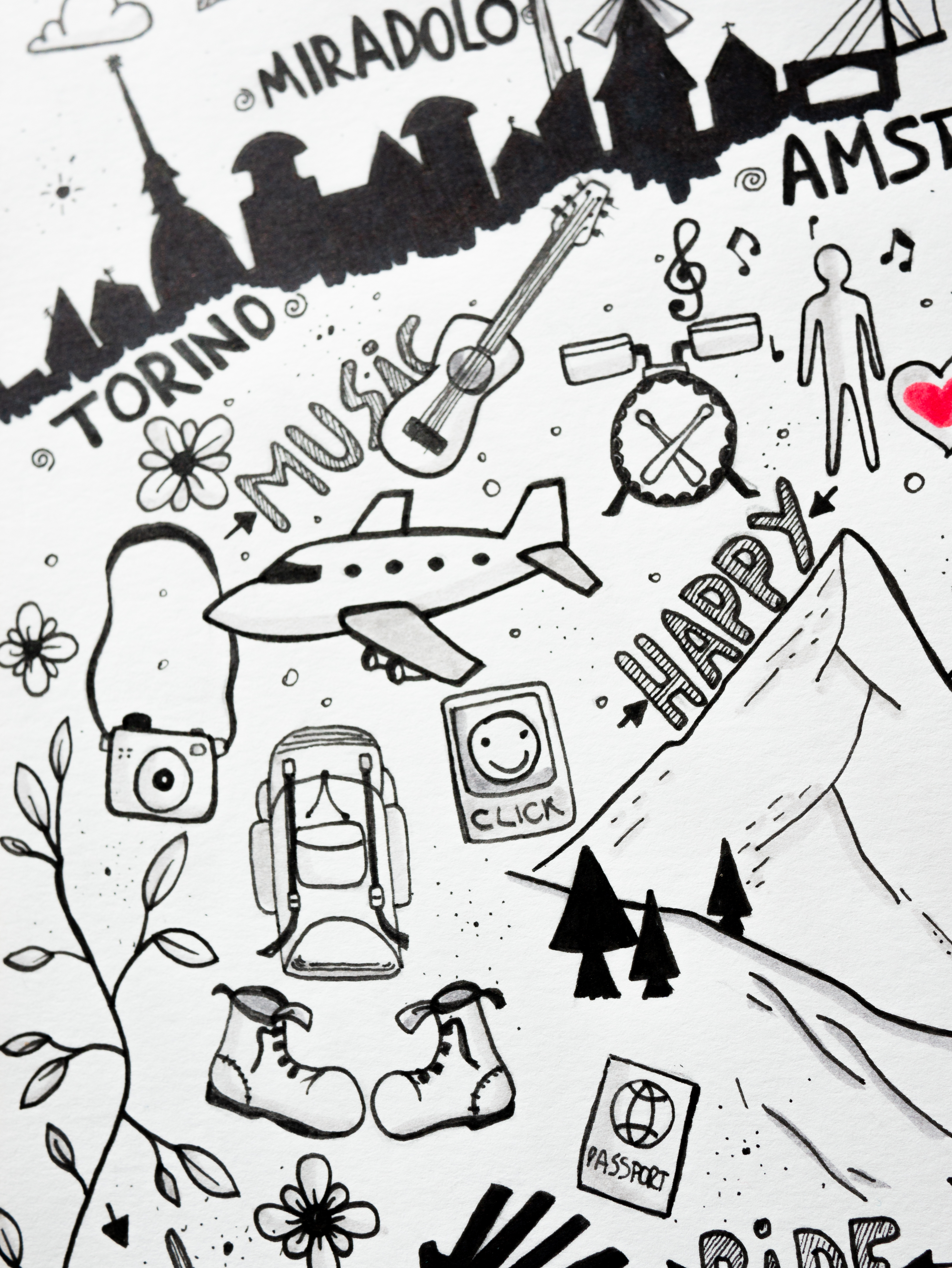 Traccio linee nere e aggiungo qualche segno rosso su carta bianca